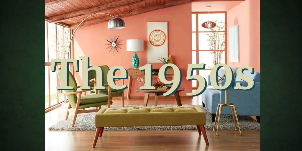 The 1950s introduced the very popular Mid-century Modern interior design style. Pastels became popular while incorporating bold designs from fruit to polka dots. Linoleum floors had fun new designs to choose from and wall to wall carpet was now an option. Living rooms were filled with Scandinavian furniture and had big, beautiful large windows to tie the interior and outside scape. Kitchens had fancy new chrome appliances and formica tables were introduced with matching chrome legs and colors and patterns of all sorts.